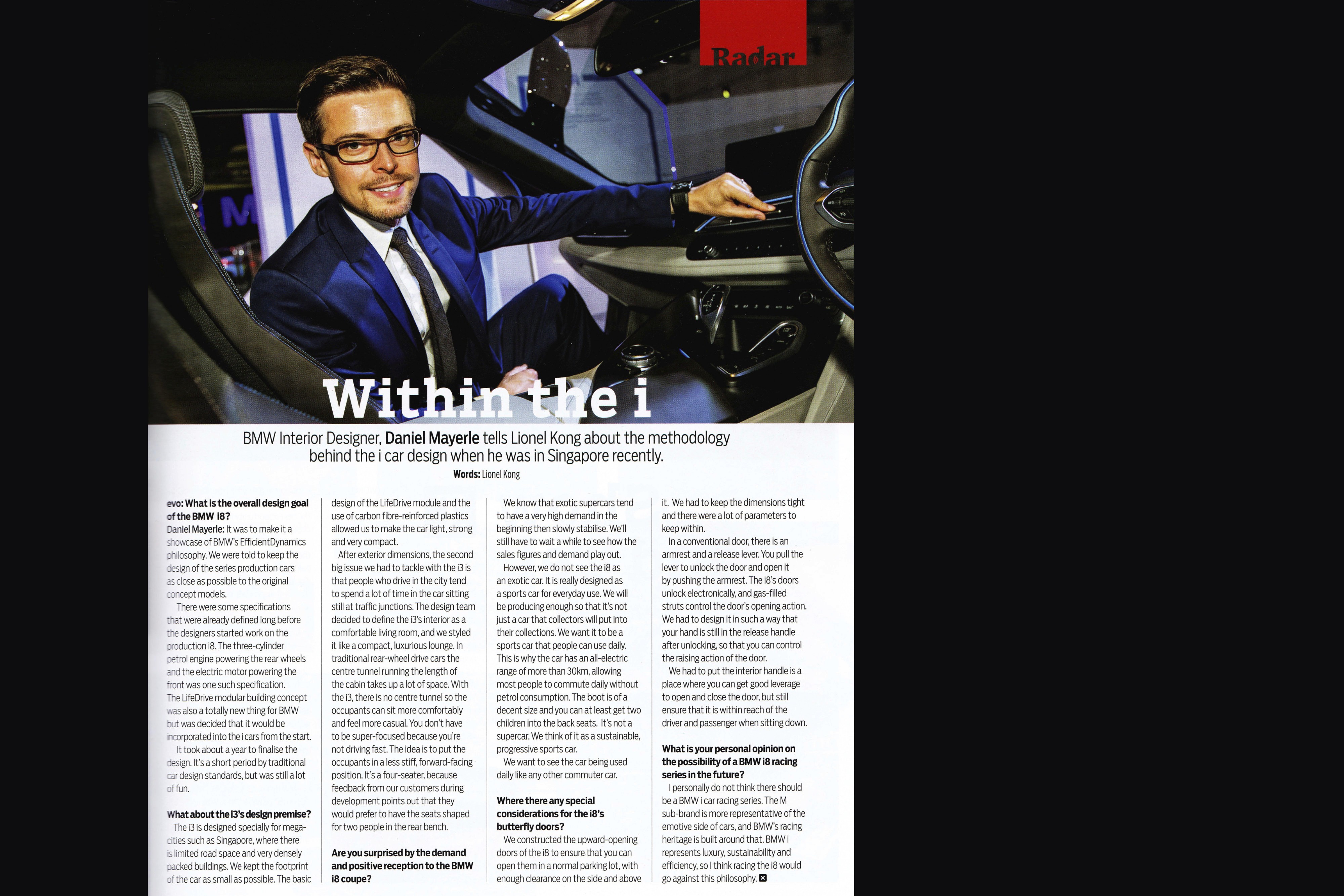In dieser Zeit durfte ich zahlreiche Interieurs von Luxus- und Sportwagen mitgestalten. Eines davon war prägend: der BMW i8,